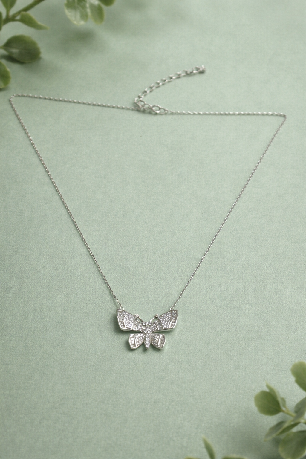 The intricate butterfly detailing combined with the brilliance of zirconia stones creates a striking contrast, enhancing the elegance and charm of this piece. Designed to be both sophisticated and versatile, this chain seamlessly elevates your look—whether styled for special occasions or worn as an elegant everyday accessory.